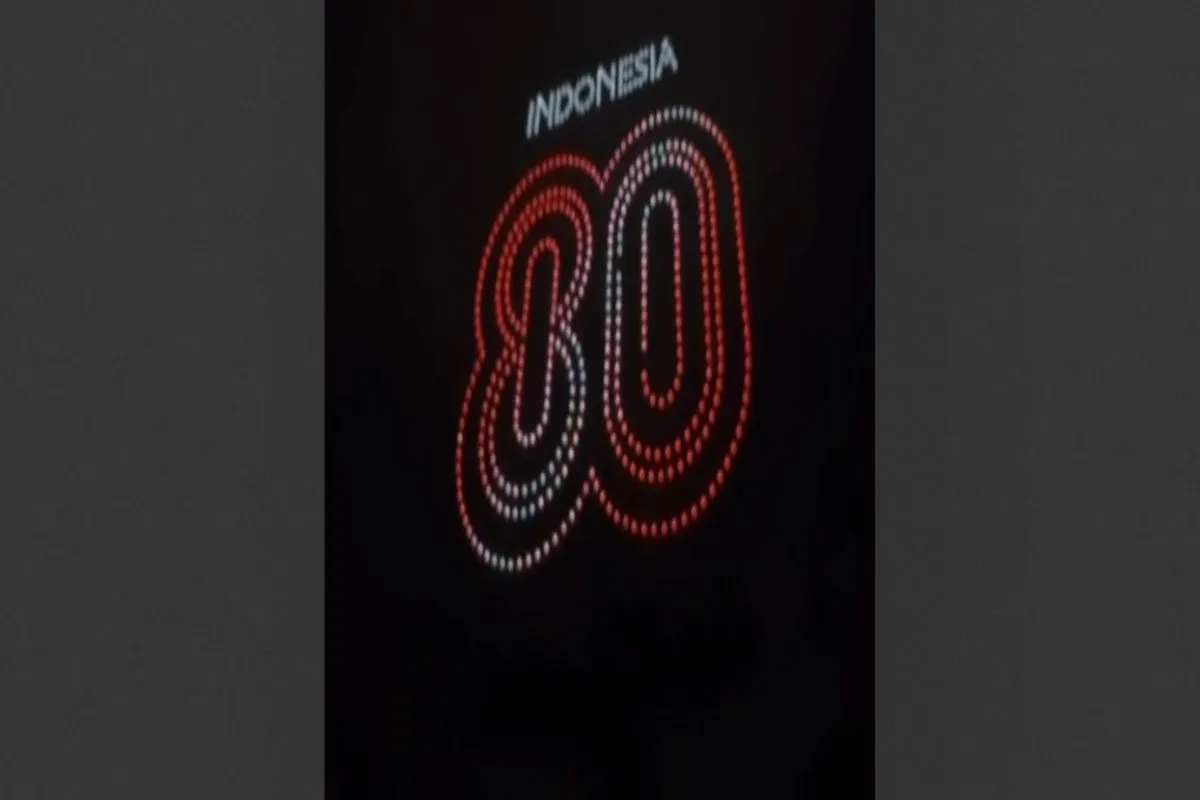 Formasi drone yang menampilkan logo resmi HUT ke-80 RI bisa dilihat oleh 1,2 juta orang di kota itu karena lokasi pertunjukan berada di jantung kota.