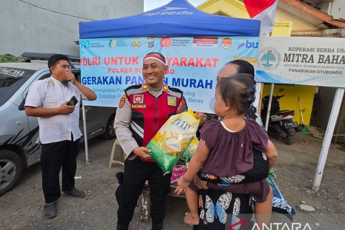 Kegiatan gerakan pangan murah Polres Situbondo tersebut bekerja sama dengan Perum Bulog dan menyediakan beras medium kemasan lima kilogram dengan harga Rp55.000 atau Rp11.000 per kilogram.
