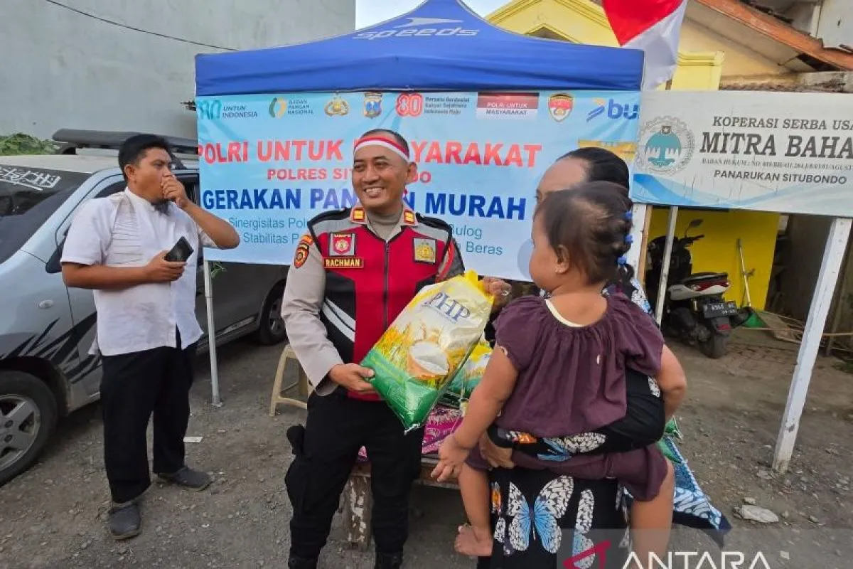 Situbondo (ANTARA) - Satuan Pembinaan Masyarakat (Binmas) dan Samapta Kepolisian Resor (Polres) Situbondo, Jawa Timur, menggelar pasar murah beras Stabilisasi Pasokan dan Harga Pangan (SPHP) di dua lokasi berbeda dalam rangka mendukung program Gerakan Pangan Murah.