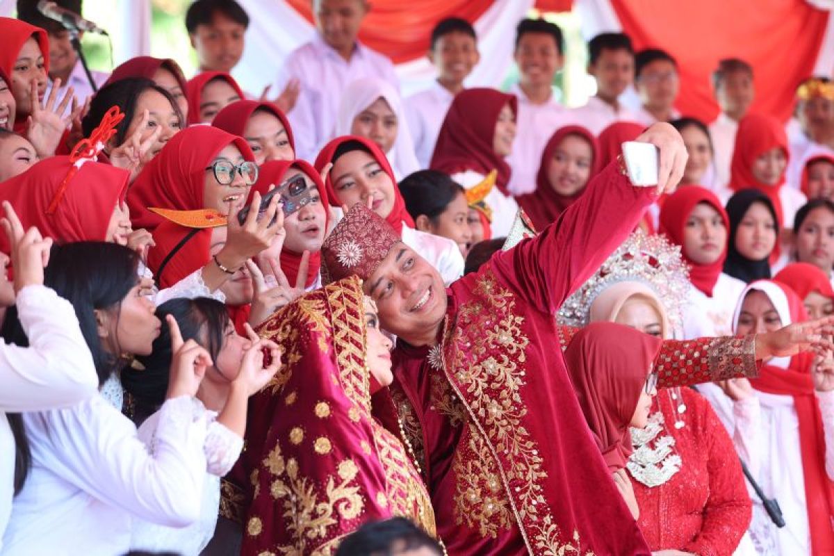 Eri Cahyadi, dan Ketua TP PKK Rini Indriyani tampil kompak mengenakan baju adat khas Minang dalam upacara tersebut.