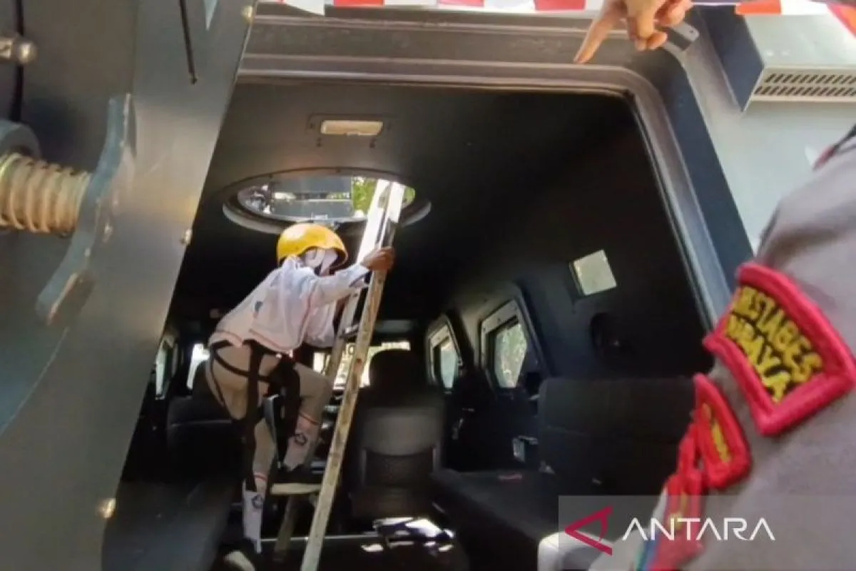 Anak-anak yang penasaran dipersilakan menaikinya dan diperbolehkan memencet tombol lampu maupun sirine polisi yang tersedia di rantis sepeda motor tersebut.