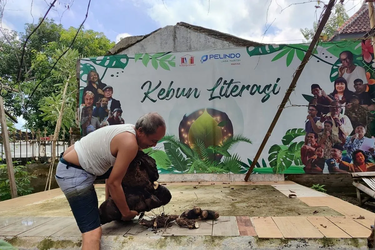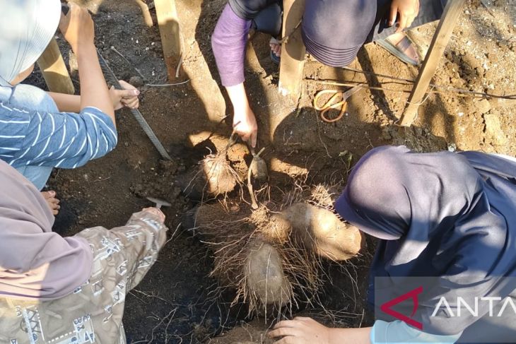 Sutejo, pegiat literasi dengan gelar akademik doktor sastra itu, baru saja selesai memanen tanaman uwi (Dioscorea alata) dan gembili (Dioscorea esculenta)