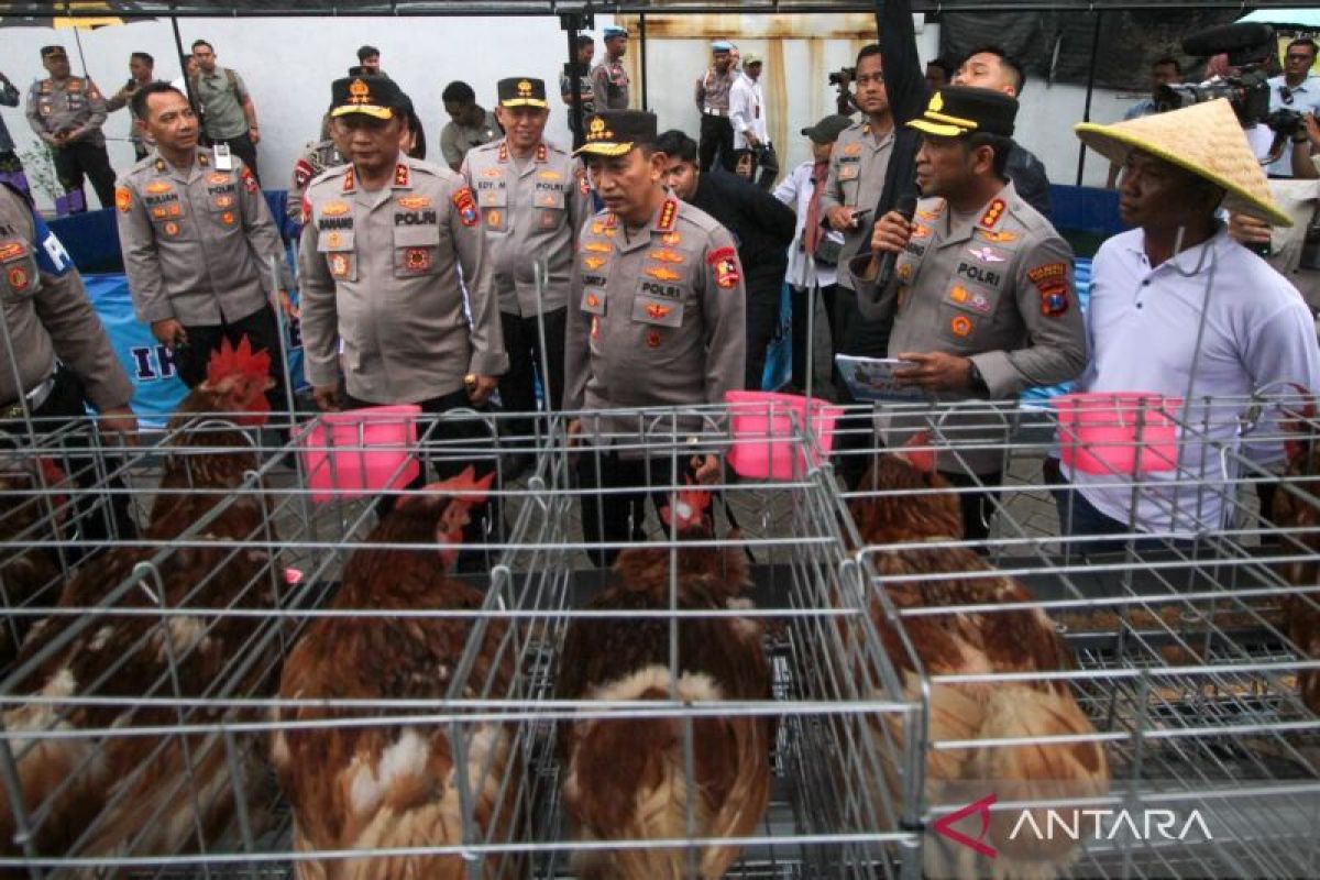 Kapolri juga turut menyapa warga yang hadir dalam Gerakan Pangan Murah (GPM) Polda Jatim di rangkaian kegiatan yang sama.