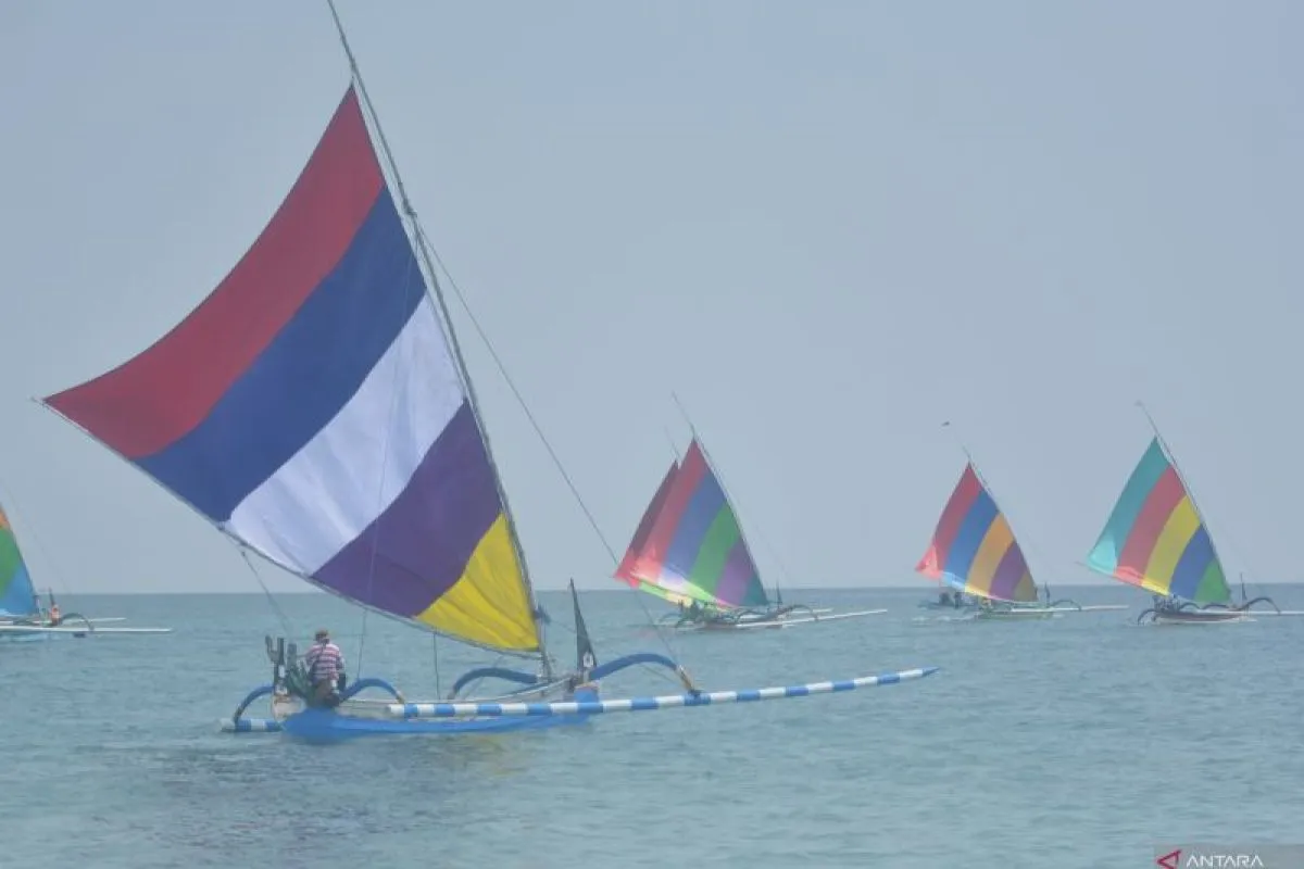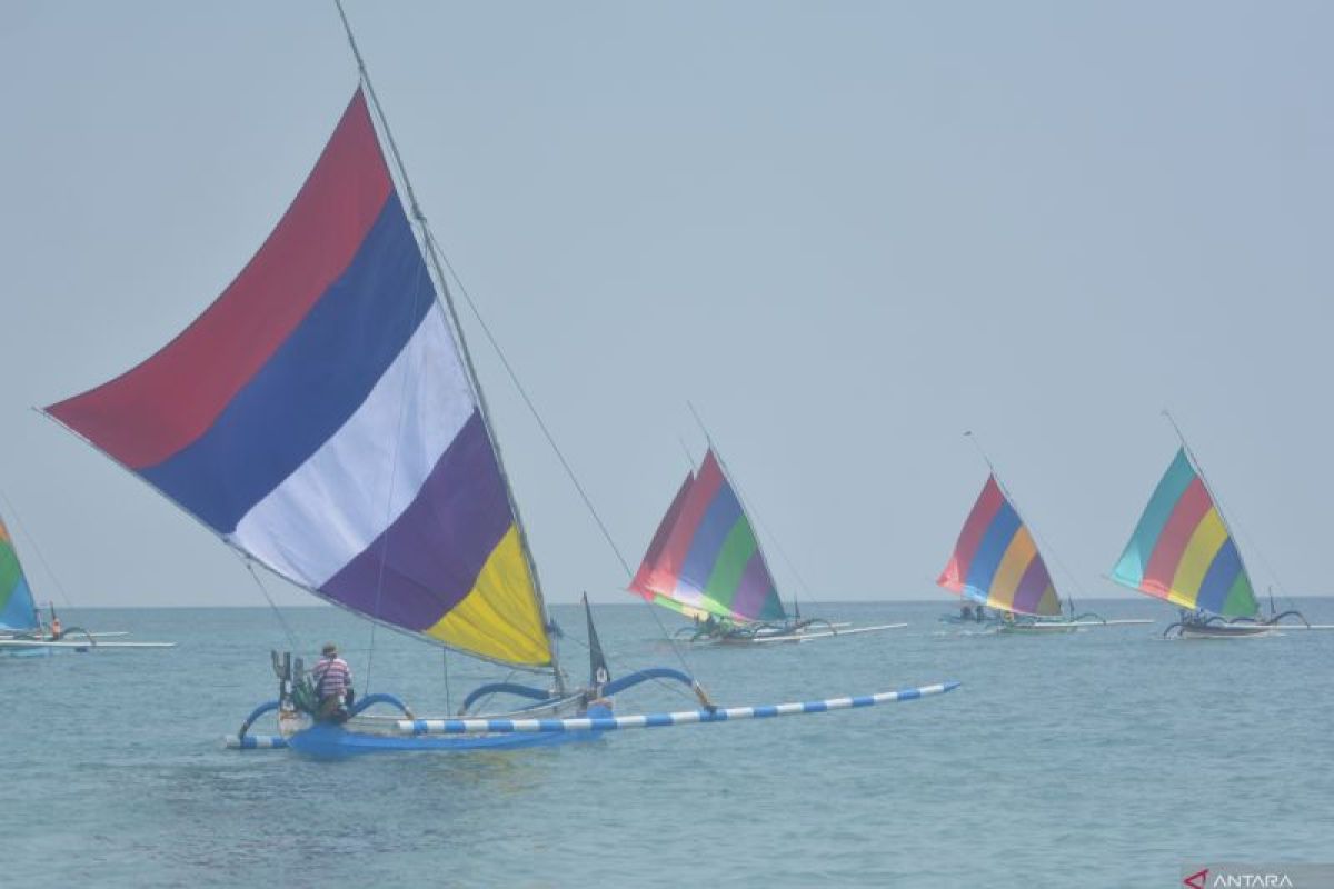 Sejumlah nelayan mengikuti lomba perahu layar di Wisata Bahari Pasir Putih, Bungatan, Situbondo, Jawa Timur, Minggu (24/8/2025). Lomba untuk memperingati Hari Jadi Kabupaten Situbondo (Harjakasi) ke-207 itu diikuti 28 perahu layar wisata. Antara Jatim/Seno/um