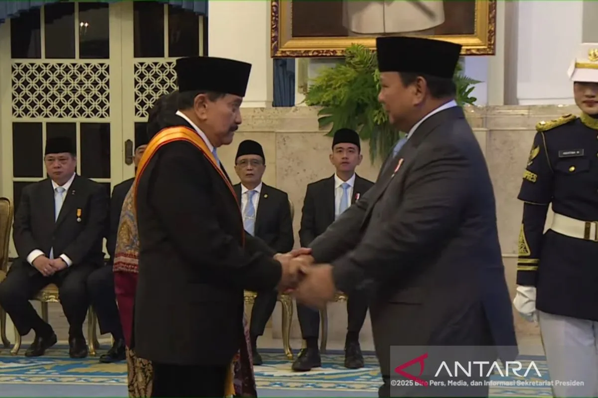 Jakarta (ANTARA) - Presiden RI Prabowo Subianto menganugerahkan tanda kehormatan Bintang Republik Indonesia Utama kepada Jenderal TNI (Purn.) Prof. Dr. A.M. Hendropriyono pada acara yang digelar di Kompleks Istana Kepresidenan, Jakarta, Senin.