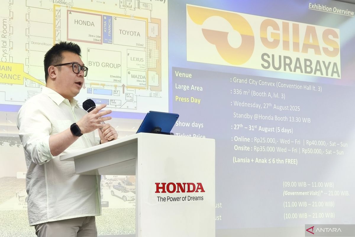 Surabaya (ANTARA) - Honda Surabaya Center (HSC) menawarkan program penjualan spesial bertajuk "Honda Iconic Deals" pada pameran Gaikindo Indonesia International Auto Show (GIIAS) Surabaya 2025 yang berlangsung di Grand City Convention and Exhibition, Surabaya, 27-31 Agustus 2025.