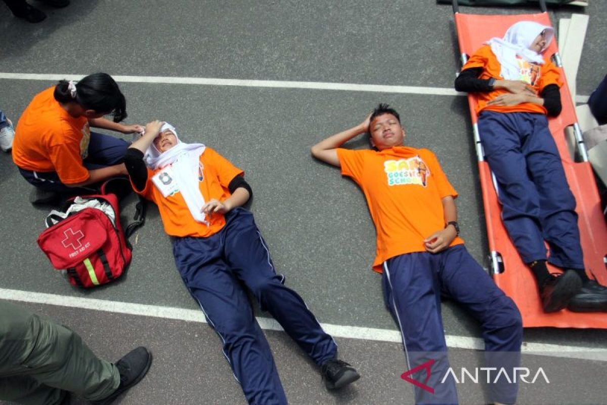 "Tentang rencana kontigensi kalau di sekolah terjadi kedaruratan, alur (evakuasi) saat terjadi bencana seperti apa. Itu kami praktikkan semuanya hari ini," ucap dia.
