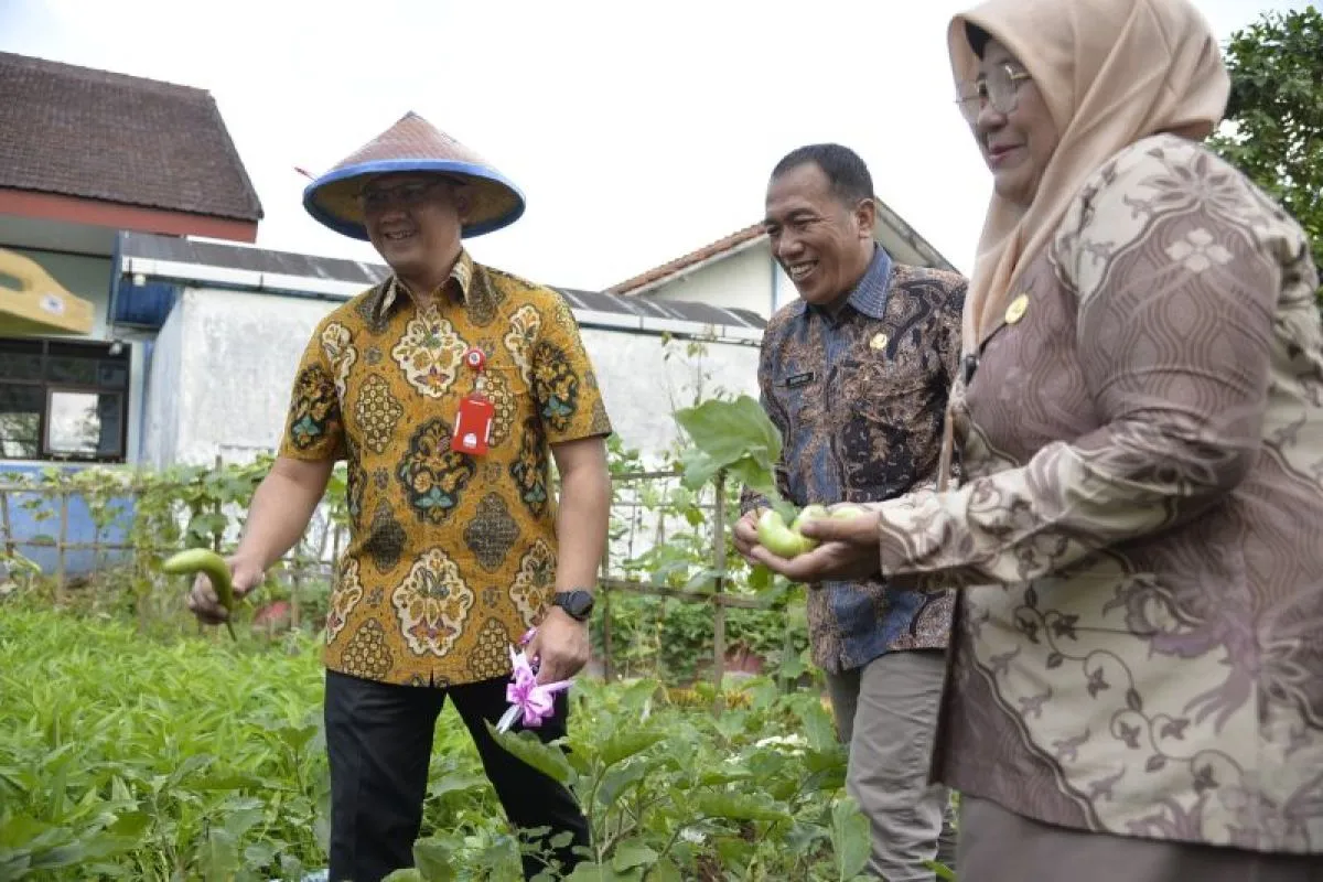 Kepala Dinas Pendidikan Jatim Aries Agung Paewai (kiri) saat meninjau program School Food Care (SFC) di salah satu sekolah beberapa waktu lalu. ANTARA/HO-Dinas Pendidikan Jatim