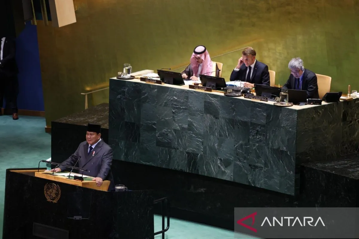 "Oleh karena itu, hari ini dengan bermartabat kami berkumpul untuk mengemban tanggung jawab historis kami. Tanggung jawab ini tidak hanya berbicara tentang nasib Palestina, tetapi juga tentang masa depan Israel, dan juga kredibilitas Perserikatan Bangsa-Bangsa," kata Presiden Prabowo saat berpidato dalam Konferensi Tingkat Tinggi (KTT) mengenai Palestina dan Solusi Dua Negara di Markas Perserikatan Bangsa-Bangsa (PBB), New York, Amerika Serikat, Senin sore waktu setempat.