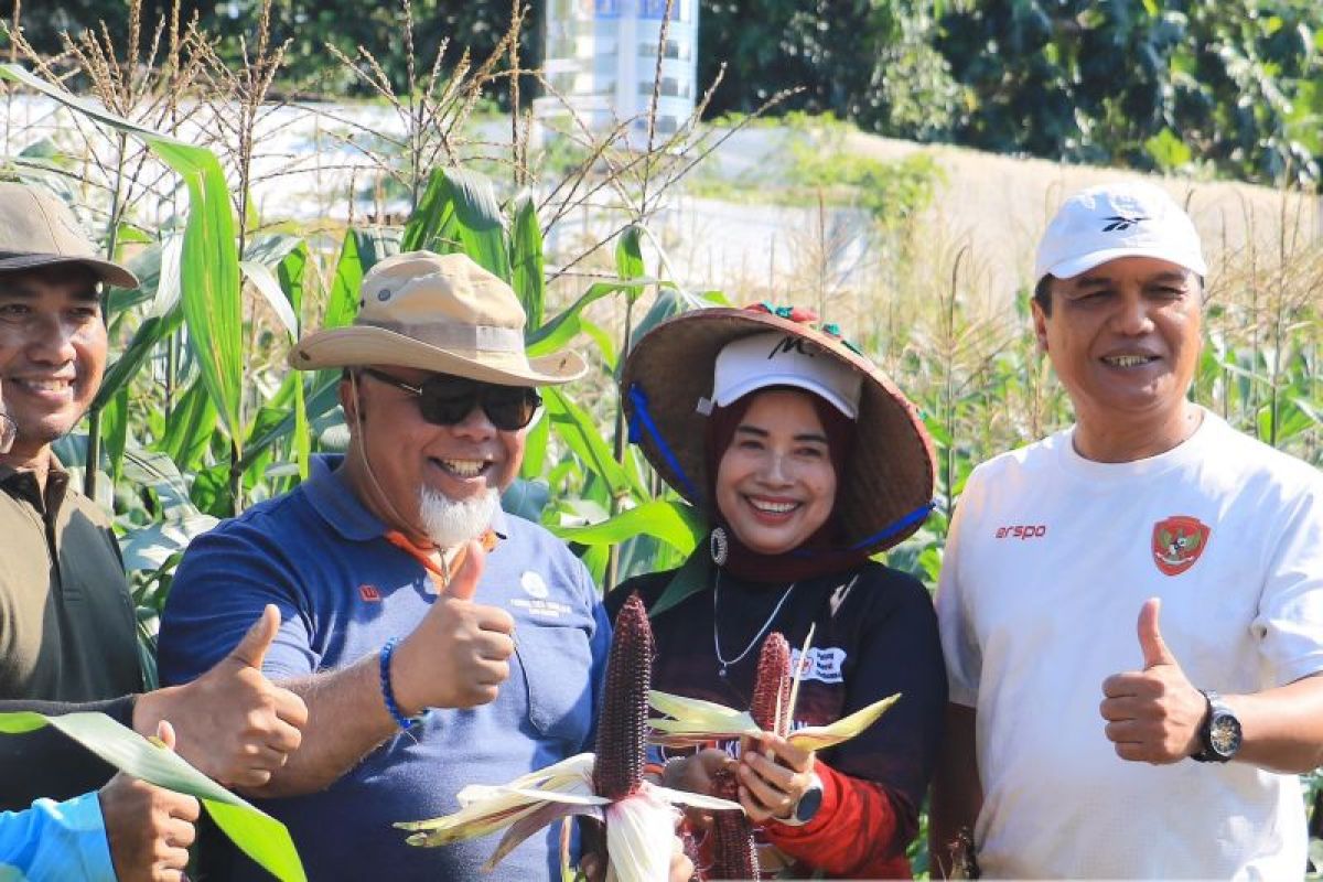 "Produksi jagung ungu per hektare bisa mencapai 10–13 ton. Selain itu, jagung ungu berumur lebih pendek, sekitar 70 hari sudah bisa dipanen untuk direbus atau dimasak. Keunggulannya adalah kandungan antioksidan tinggi, bermanfaat untuk penderita diabetes dan hipertensi. Rebusan airnya bahkan bisa dijadikan obat," kata Dedi.