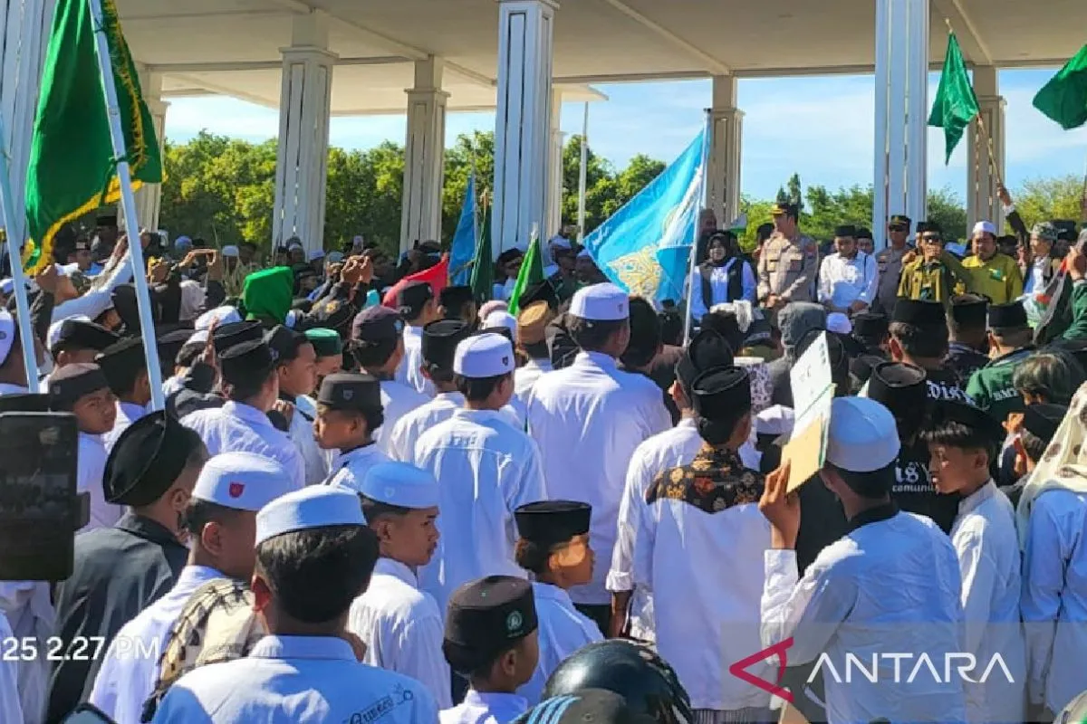 Aksi unjuk rasa ribuan alumni pesantren ini diakhiri dengan istigasah dan salawat serta doa bersama.