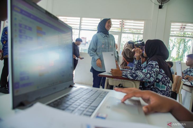 Direktur Ekosistem Media Kementerian Komunikasi dan Digital (Komdigi) Farida Dewi Maharani meninjau pembelajaran koding dan kecerdasan buatan di Sekolah Rakyat Terintegrasi (SRT) 7 Probolinggo, Jawa Timur, Kamis (16/4/2026). Komdigi memastikan jaringan internet dan fasilitas digital di sekolah tersebut berjalan optimal guna mendukung proses pembelajaran berbasis teknologi. Antara Jatim/Irfan Sumanjaya/abs