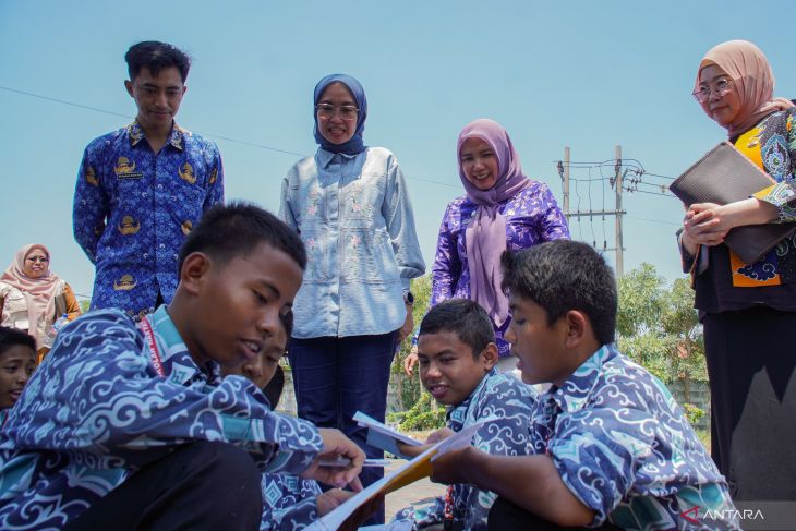 Direktur Ekosistem Media Kementerian Komunikasi dan Digital (Komdigi) Farida Dewi Maharani (kedua kiri) didampingi Kadinsos Probolinggo Mahdiha (kanan) dan Plt Kepala Dinas Komunikasi dan Informatika (Diskominfo) Kota Probolinggo Lucia Aries Yulianti (kedua kanan) meninjau pembelajaran luar ruangan di Sekolah Rakyat Terintegrasi (SRT) 7 Probolinggo, Jawa Timur, Kamis (16/4/2026). Komdigi memastikan jaringan internet dan fasilitas digital di sekolah tersebut berjalan optimal guna mendukung proses pembelajaran berbasis teknologi. Antara Jatim/Irfan Sumanjaya/abs