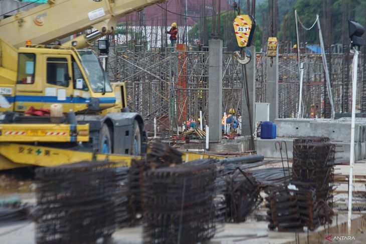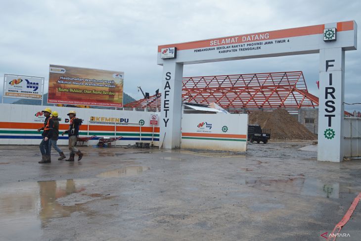 Pengawas proyek mengawasi pelaksanaan pembangunan Sekolah Rakyat (SR) di Trenggalek, Jawa Timur, Rabu (22/4/2026). Proyek pembangunan kompleks sekolah terpadu di atas lahan seluas enam hektare tersebut dimulai pada 2025 dan ditargetkan rampung pada akhir 2026 dengan anggaran hampir Rp300 miliar, sebagai bagian dari program nasional pembangunan Sekolah Rakyat (SR) untuk memperluas akses pendidikan bagi anak dari keluarga kurang mampu melalui sistem asrama dan pembiayaan pemerintah. ANTARA Jatim/Destyan Sujarwoko/mas.