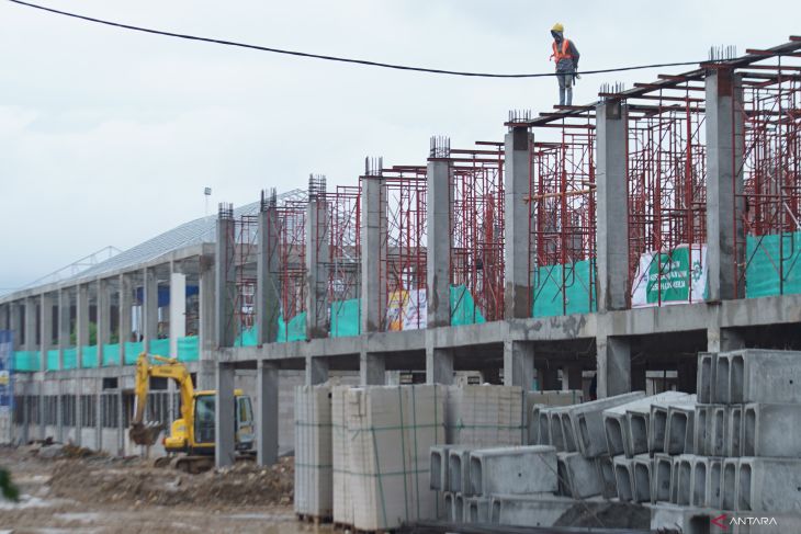 Pekerja melanjutkan pekerjaan pembangunan Sekolah Rakyat (SR) di Trenggalek, Jawa Timur, Rabu (22/4/2026). Proyek pembangunan kompleks sekolah terpadu di atas lahan seluas enam hektare tersebut dimulai pada 2025 dan ditargetkan rampung pada akhir 2026 dengan anggaran hampir Rp300 miliar, sebagai bagian dari program nasional pembangunan Sekolah Rakyat (SR) untuk memperluas akses pendidikan bagi anak dari keluarga kurang mampu melalui sistem asrama dan pembiayaan pemerintah. ANTARA Jatim/Destyan Sujarwoko/mas.