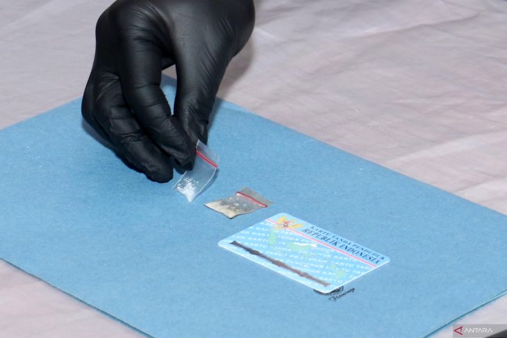 Petugas Lapas menunjukan narkotika jenis sabu-sabu pada Konferensi pers di Lapas Banyuwangi, Jawa Timur, Selasa (28/4/2026). Petugas Lapas mengamankan seorang perempuan berinisial EM yang kedapatan membawa dua Paket sabu saat hendak menjenguk narapidana di dalam lapas. ANTARA Jatim/Budi Candra Setya/mas.