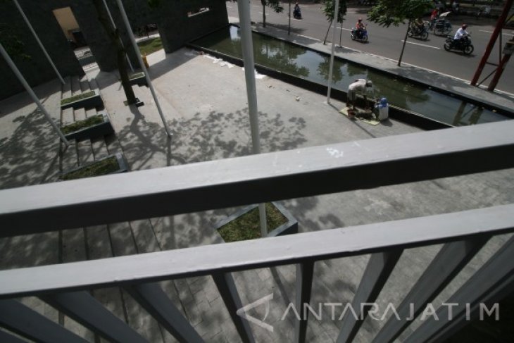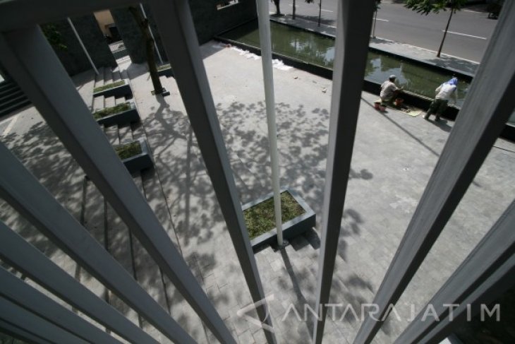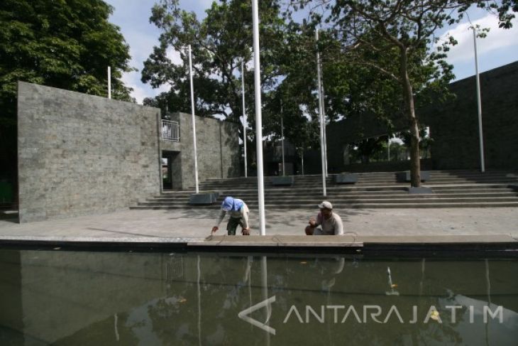 Pekerja menyelesaikan pembangunan Memorial Park di depan Taman Makam Pahlawan, Kota Kediri Jawa Timur, Rabu (4/1). Taman peringatan yang nantinya akan terpahat seluruh nama pahlawan yang dimakamkan di daerah tersebut dibangun guna menumbuh kembangkan rasa nasionalisme dan patriotisme sekaligus memberikan tempat bersantai bagi masyarakat. Antara Jatim/Prasetia Fauzani/zk/17