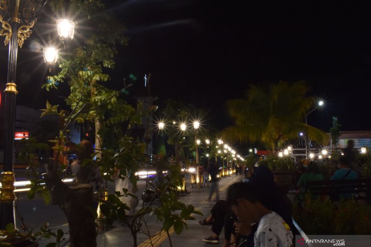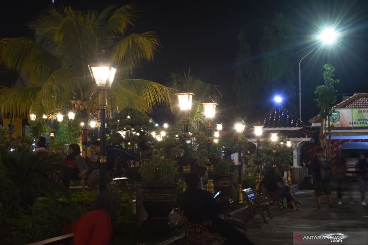 Pengunjung menikmati suasana taman kota di depan Balai Kota Madiun Jawa Timur, Selasa (21/1/2020). Pemkot Madiun merombak kawasan trotoar di sekitar balai kota menjadi taman dengan dilengkapi tempat duduk, berbagai tanaman dan lampu hias guna memberi tempat bagi warganya untuk menikmati suasana taman di tengah kota. Antara Jatim/Siswowidodo/zk