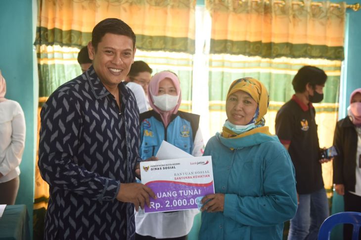 Wali Kota Kediri Abdullah Abu Bakar memberikan santunan untuk warga di Kediri, Jawa Timur, Rabu (8/6/2022). Terdapat 15 penerima santunan kematian dan 32 pemerima kartu KIS. Total di Kota Kediri jumlah penerima santunan kematian sebanyak 157 dan kartu Kartu Indonesia Sehat (KIS) sebanyak 1.487 orang. ANTARA/ Asmaul-Kominfo Kota Kediri